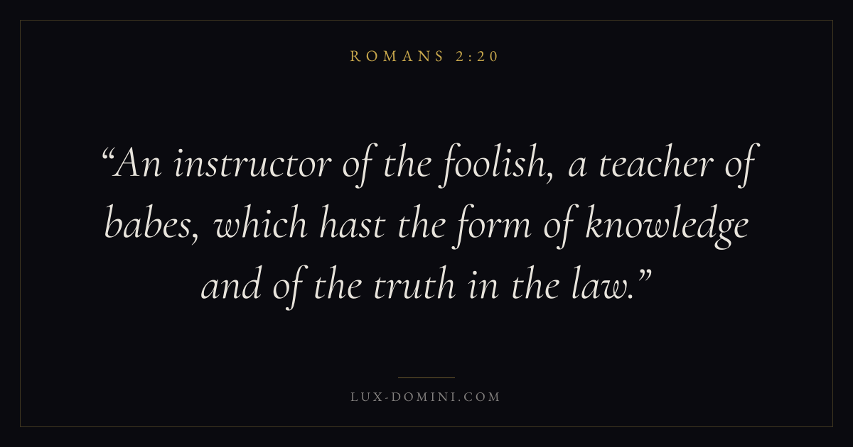 An instructor of the foolish, a teacher of babes, which hast the form of knowledge and of the truth in the law.