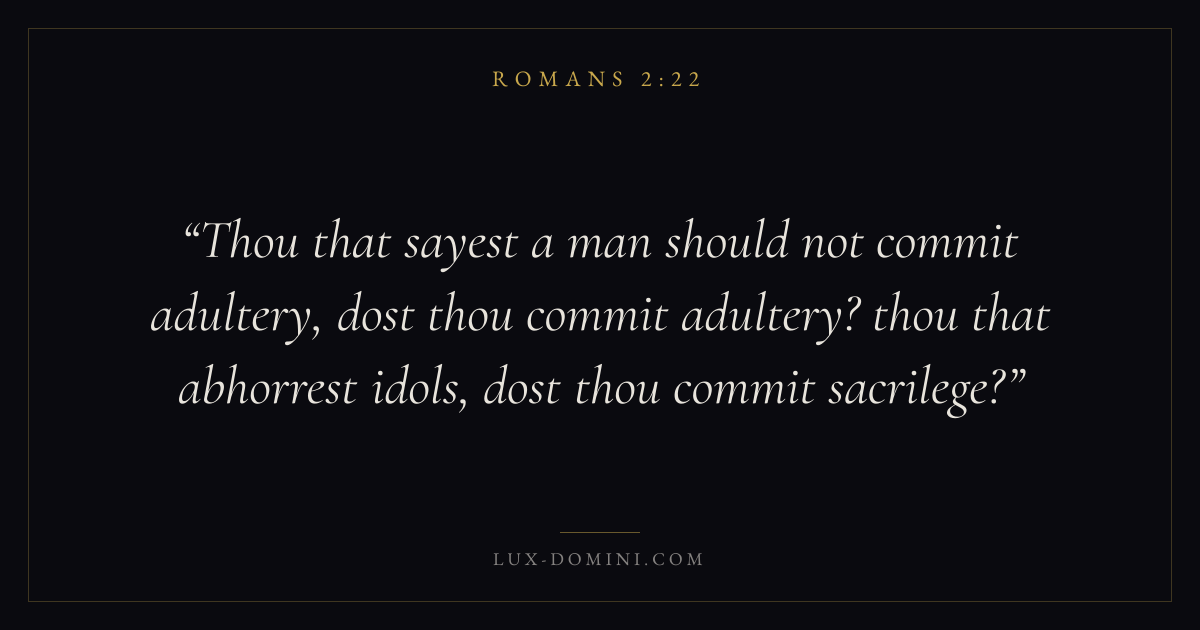 Thou that sayest a man should not commit adultery, dost thou commit adultery? thou that abhorrest idols, dost thou commit sacrilege?