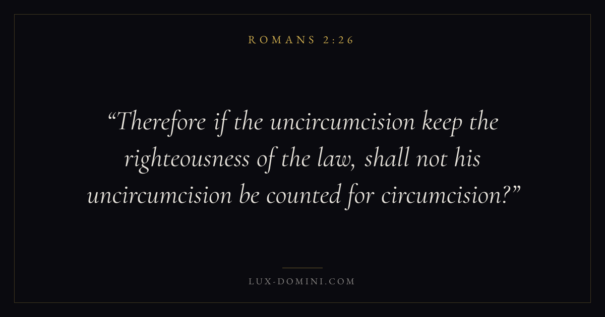 Therefore if the uncircumcision keep the righteousness of the law, shall not his uncircumcision be counted for circumcision?