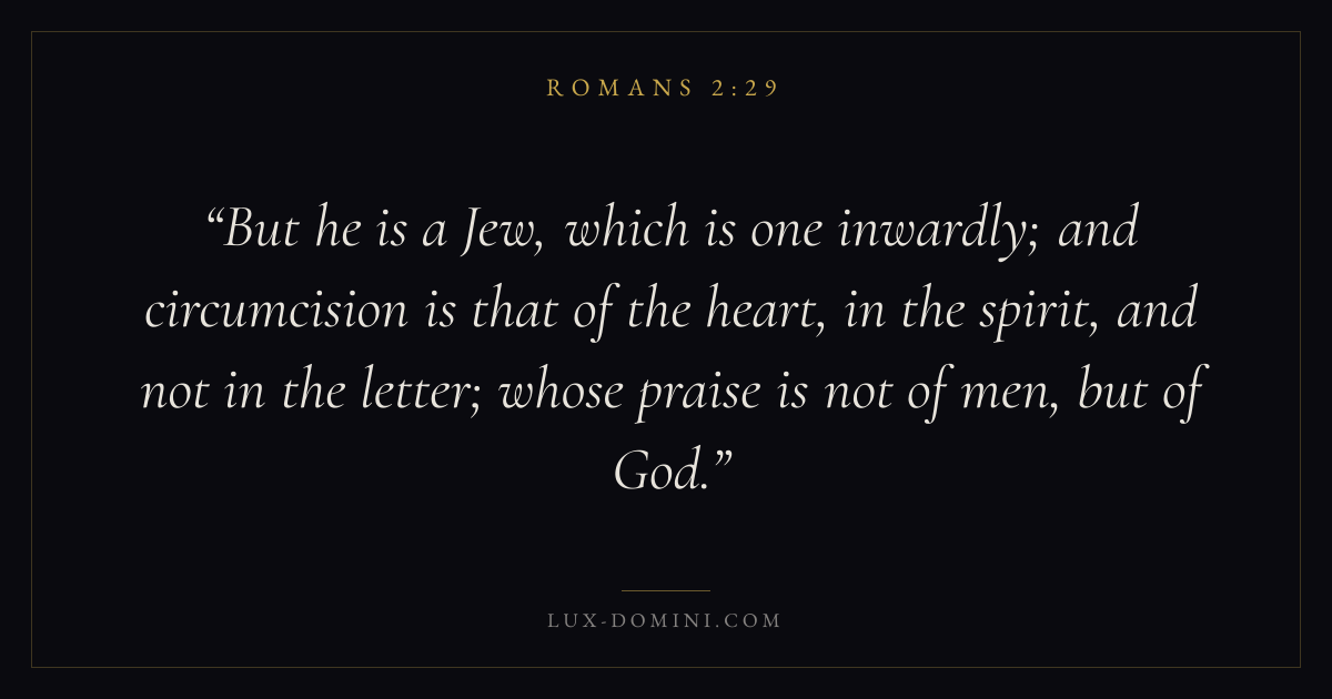 But he is a Jew, which is one inwardly; and circumcision is that of the heart, in the spirit, and not in the letter; whose praise is not of men, but of God.