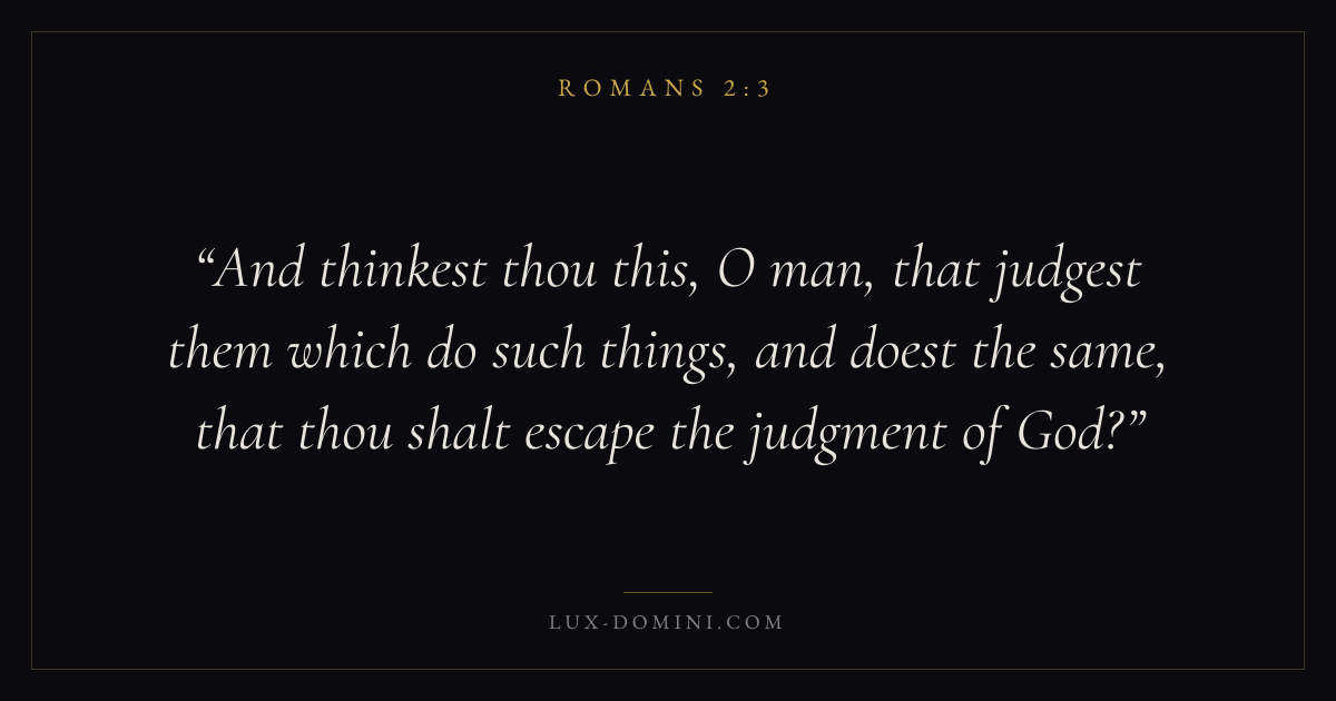 And thinkest thou this, O man, that judgest them which do such things, and doest the same, that thou shalt escape the judgment of God?