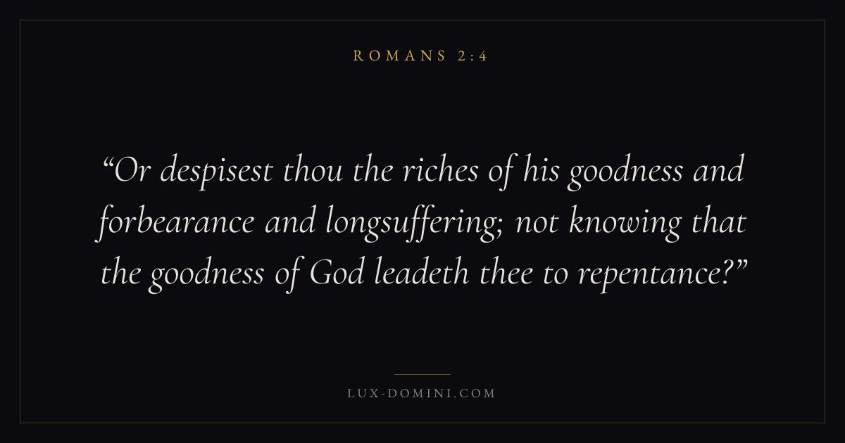 Or despisest thou the riches of his goodness and forbearance and longsuffering; not knowing that the goodness of God leadeth thee to repentance?