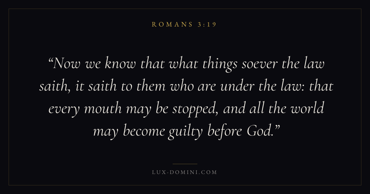 Now we know that what things soever the law saith, it saith to them who are under the law: that every mouth may be stopped, and all the world may become guilty before God.