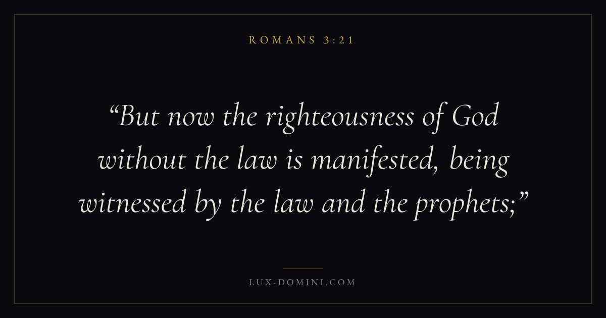 But now the righteousness of God without the law is manifested, being witnessed by the law and the prophets;