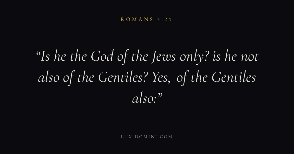 Is he the God of the Jews only? is he not also of the Gentiles? Yes, of the Gentiles also: