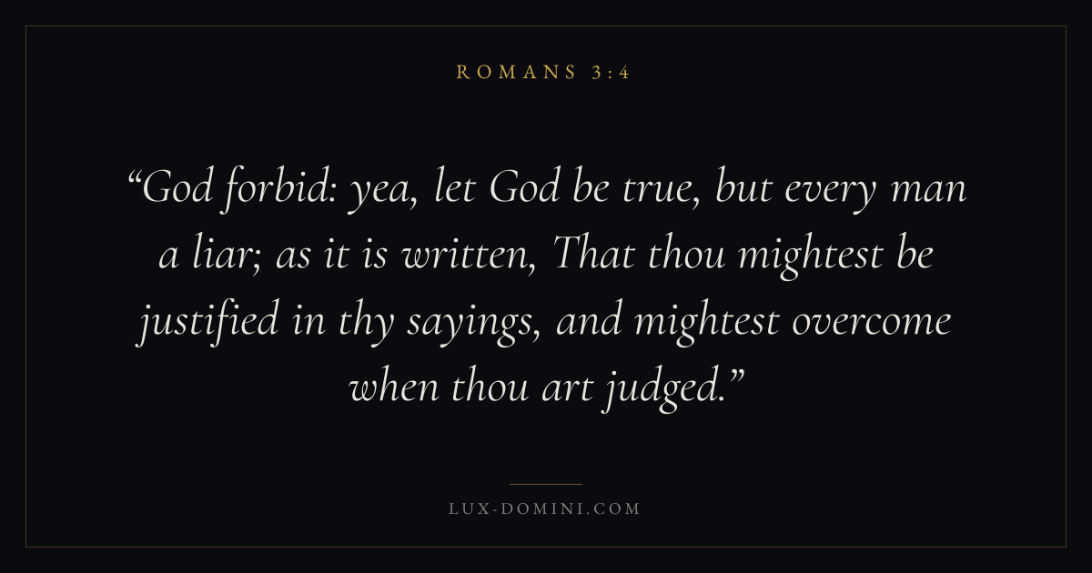 God forbid: yea, let God be true, but every man a liar; as it is written, That thou mightest be justified in thy sayings, and mightest overcome when thou art judged.