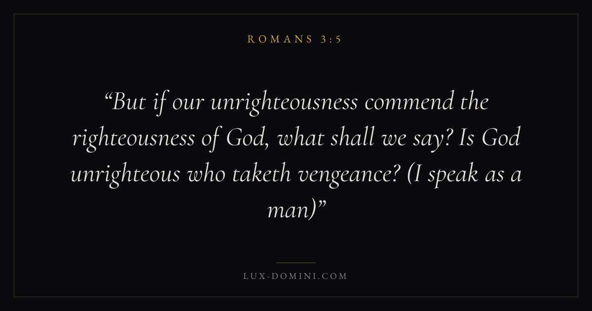 But if our unrighteousness commend the righteousness of God, what shall we say? Is God unrighteous who taketh vengeance? (I speak as a man)