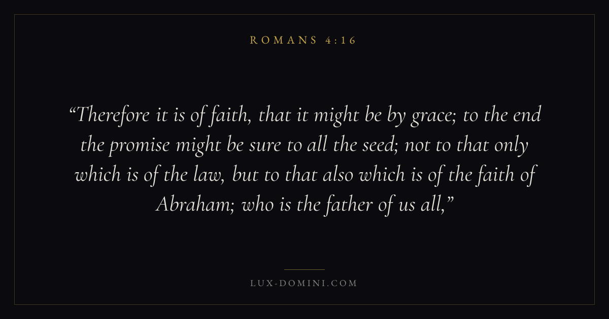 Therefore it is of faith, that it might be by grace; to the end the promise might be sure to all the seed; not to that only which is of the law, but to that also which is of the faith of Abraham; who is the father of us all,