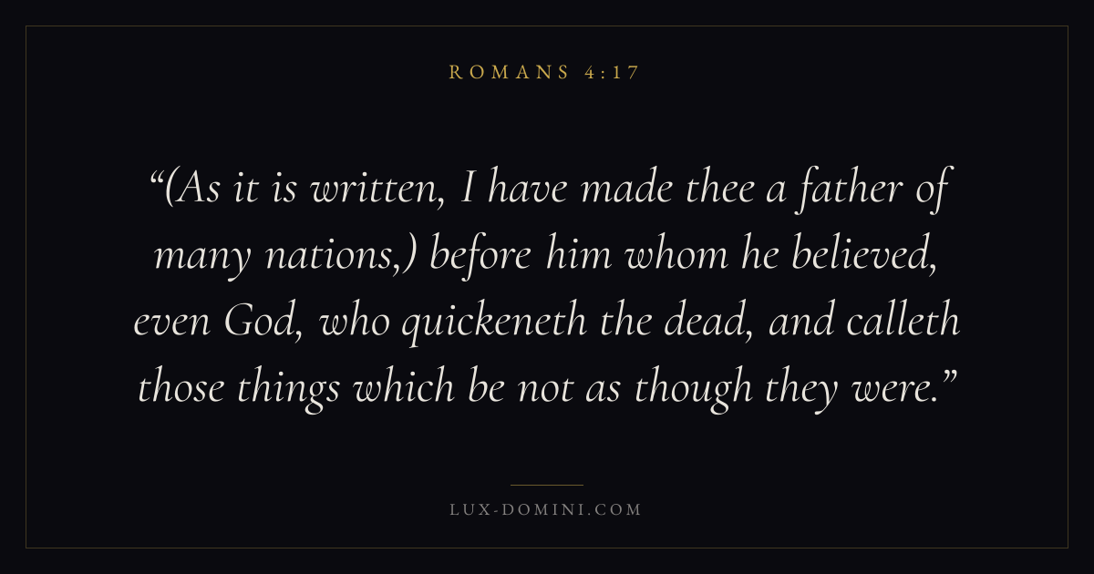 (As it is written, I have made thee a father of many nations,) before him whom he believed, even God, who quickeneth the dead, and calleth those things which be not as though they were.