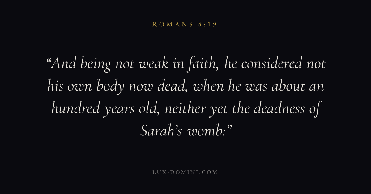 And being not weak in faith, he considered not his own body now dead, when he was about an hundred years old, neither yet the deadness of Sarah’s womb: