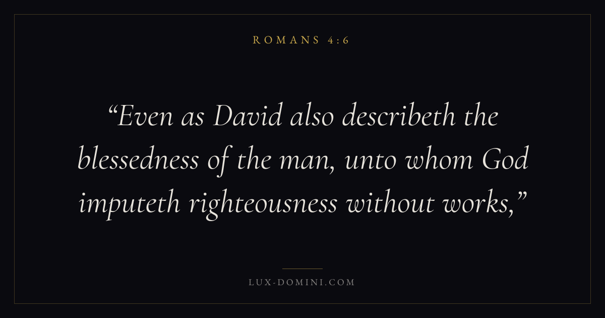 Even as David also describeth the blessedness of the man, unto whom God imputeth righteousness without works,