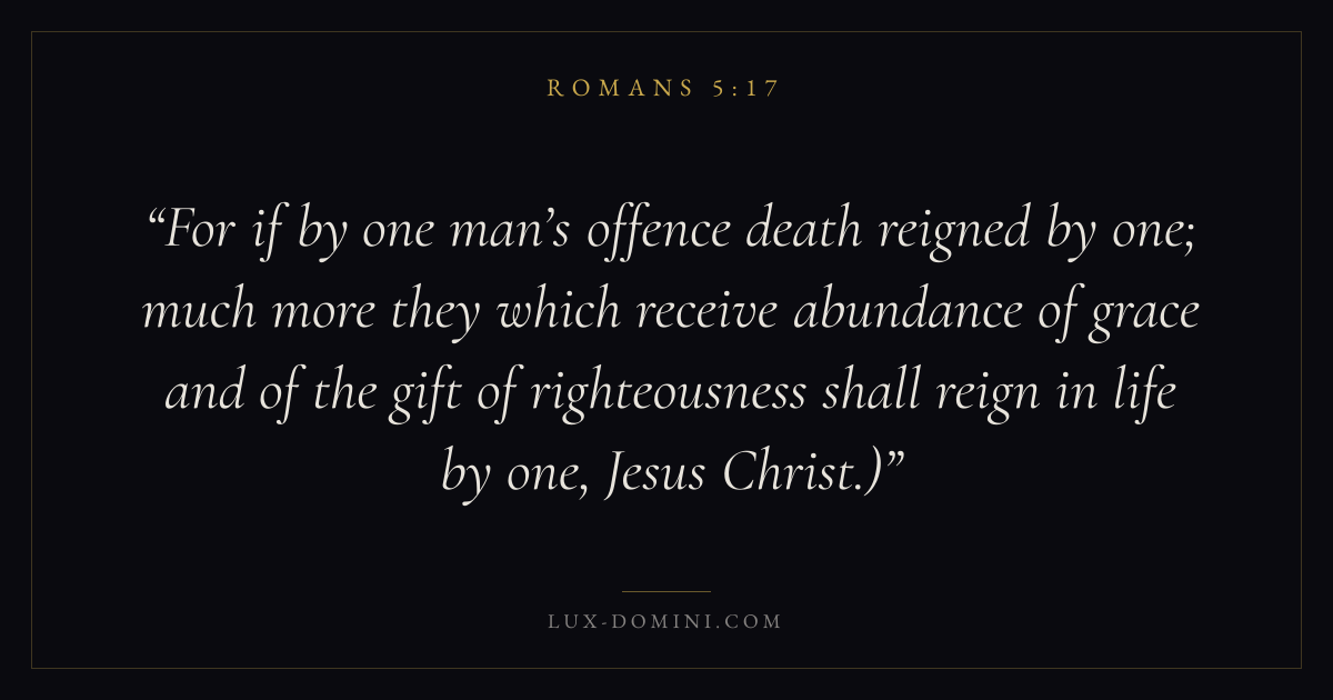 For if by one man’s offence death reigned by one; much more they which receive abundance of grace and of the gift of righteousness shall reign in life by one, Jesus Christ.)