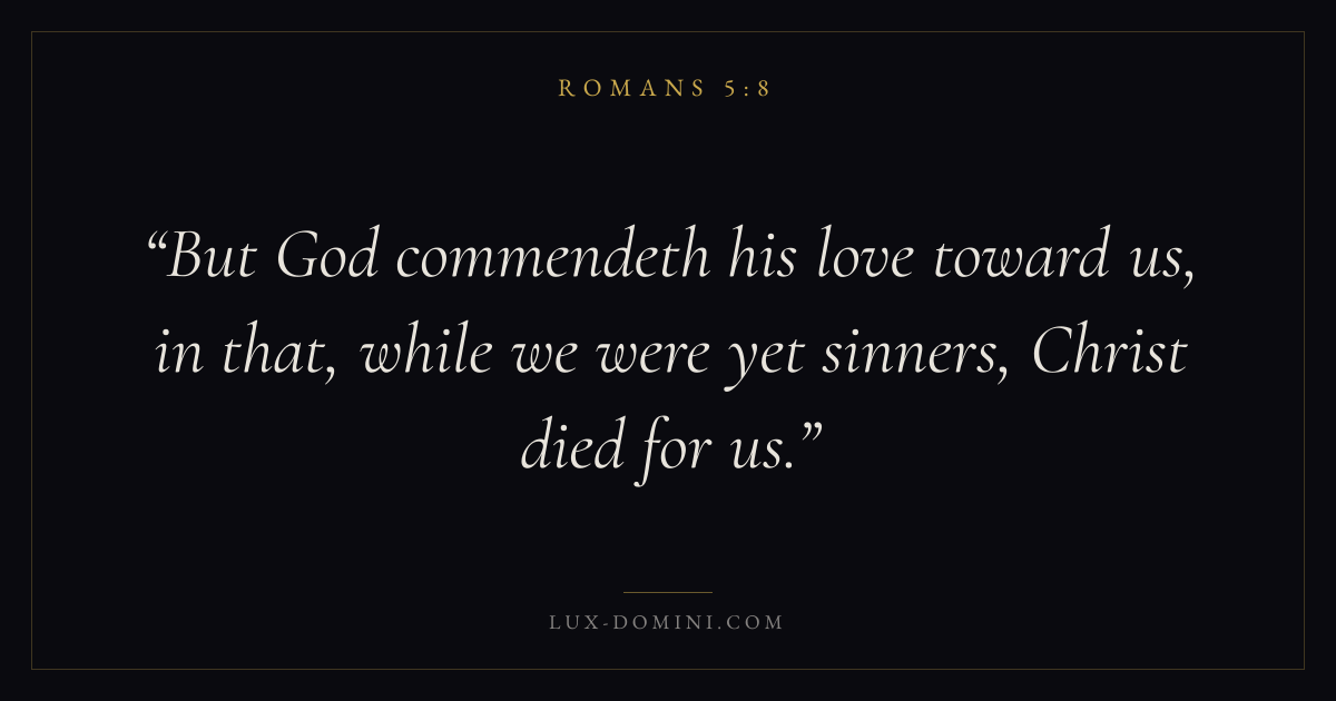 But God commendeth his love toward us, in that, while we were yet sinners, Christ died for us.