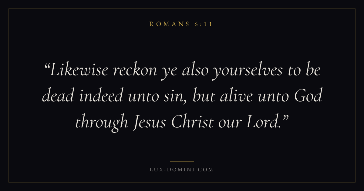 Likewise reckon ye also yourselves to be dead indeed unto sin, but alive unto God through Jesus Christ our Lord.