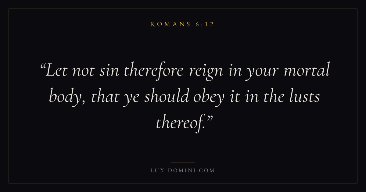 Let not sin therefore reign in your mortal body, that ye should obey it in the lusts thereof.