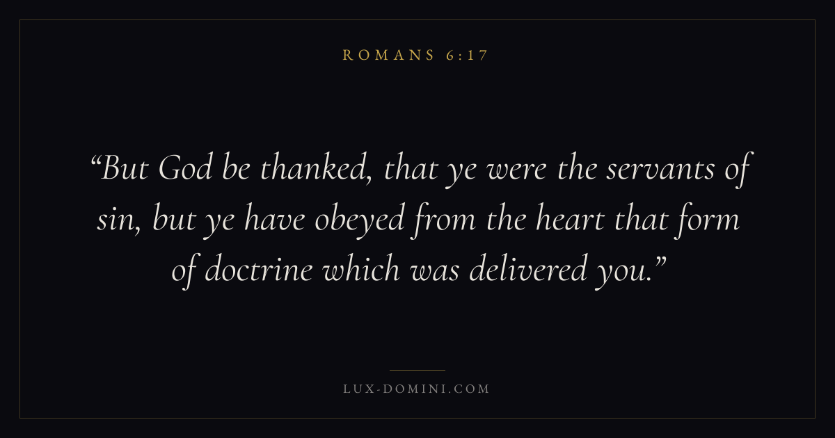 But God be thanked, that ye were the servants of sin, but ye have obeyed from the heart that form of doctrine which was delivered you.