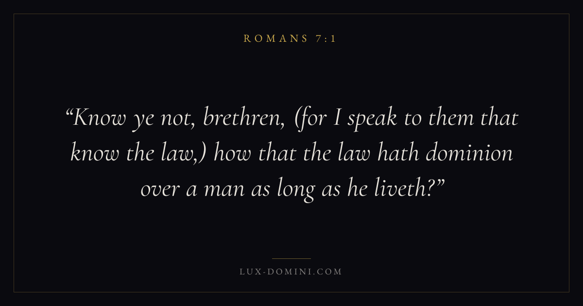 Know ye not, brethren, (for I speak to them that know the law,) how that the law hath dominion over a man as long as he liveth?