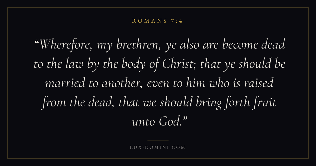 Wherefore, my brethren, ye also are become dead to the law by the body of Christ; that ye should be married to another, even to him who is raised from the dead, that we should bring forth fruit unto God.