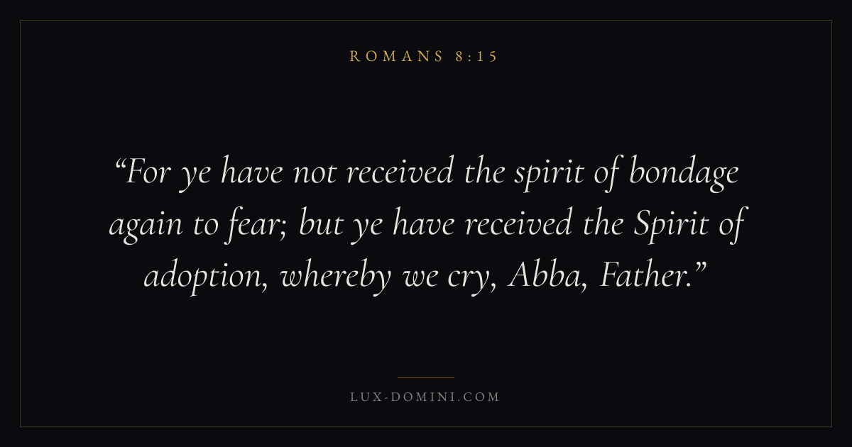 For ye have not received the spirit of bondage again to fear; but ye have received the Spirit of adoption, whereby we cry, Abba, Father.
