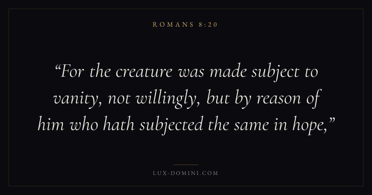For the creature was made subject to vanity, not willingly, but by reason of him who hath subjected the same in hope,
