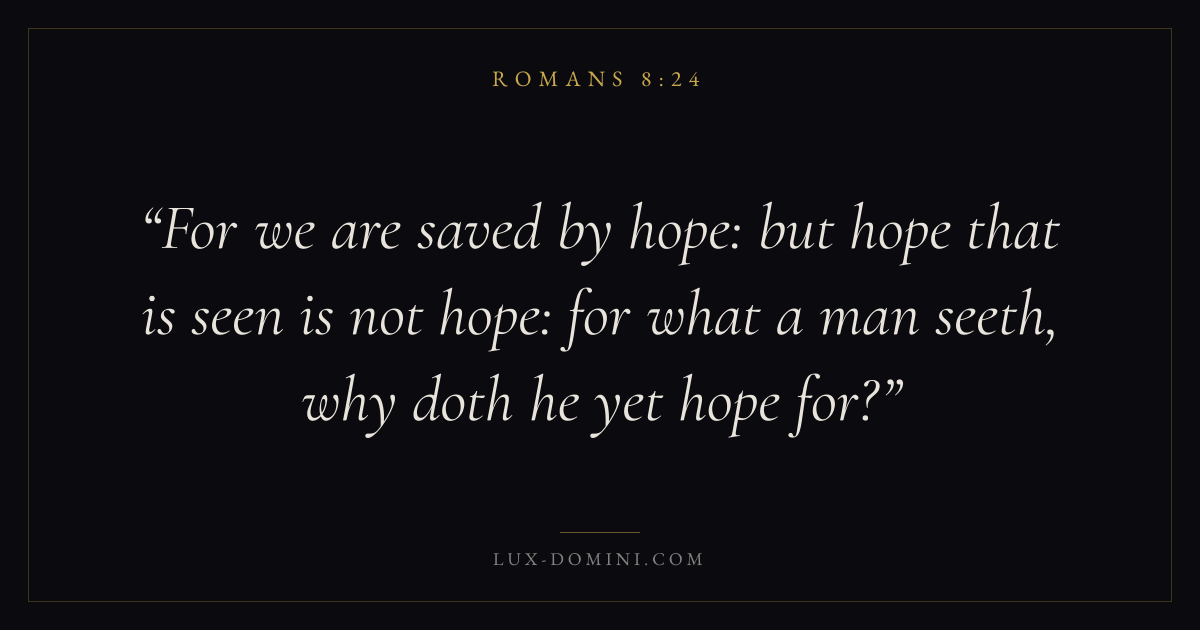 For we are saved by hope: but hope that is seen is not hope: for what a man seeth, why doth he yet hope for?