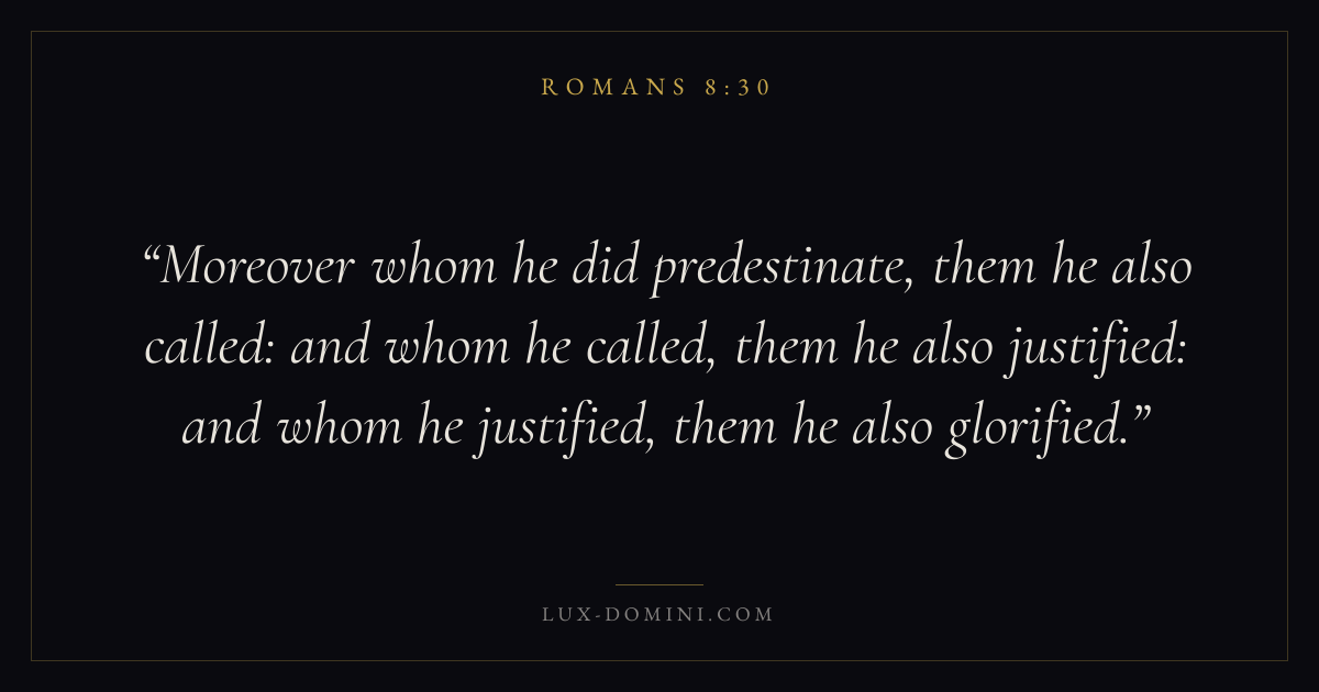 Moreover whom he did predestinate, them he also called: and whom he called, them he also justified: and whom he justified, them he also glorified.