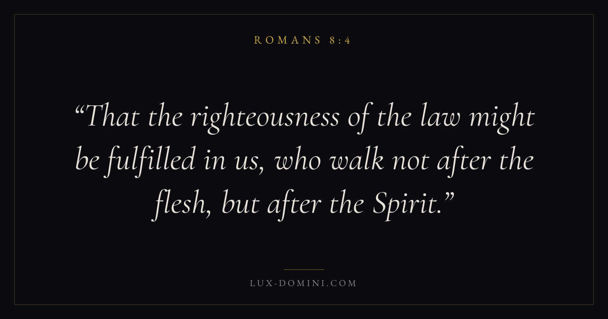 That the righteousness of the law might be fulfilled in us, who walk not after the flesh, but after the Spirit.