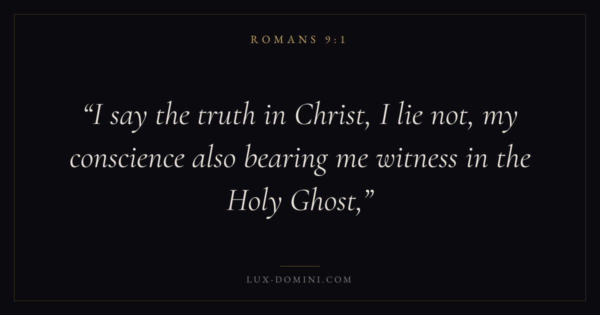 I say the truth in Christ, I lie not, my conscience also bearing me witness in the Holy Ghost,