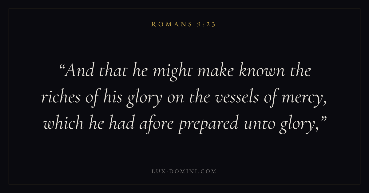 And that he might make known the riches of his glory on the vessels of mercy, which he had afore prepared unto glory,