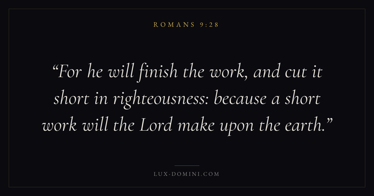 For he will finish the work, and cut it short in righteousness: because a short work will the Lord make upon the earth.