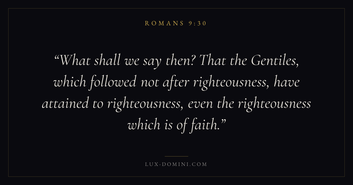 What shall we say then? That the Gentiles, which followed not after righteousness, have attained to righteousness, even the righteousness which is of faith.