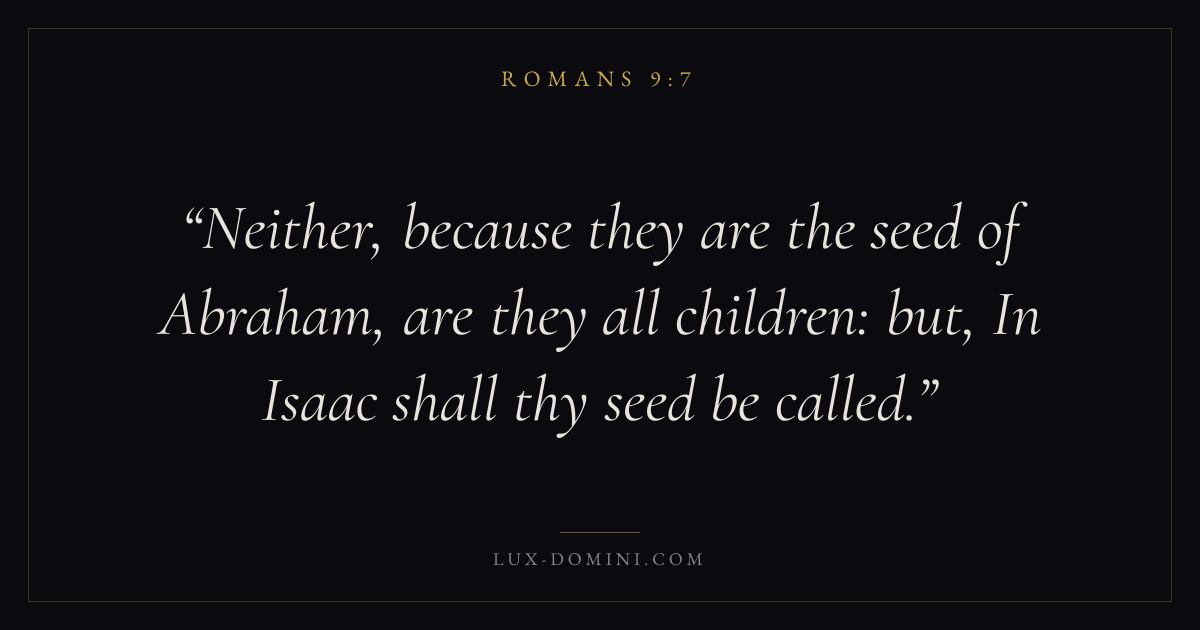 Neither, because they are the seed of Abraham, are they all children: but, In Isaac shall thy seed be called.