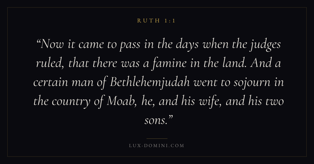 Now it came to pass in the days when the judges ruled, that there was a famine in the land. And a certain man of Bethlehemjudah went to sojourn in the country of Moab, he, and his wife, and his two sons.