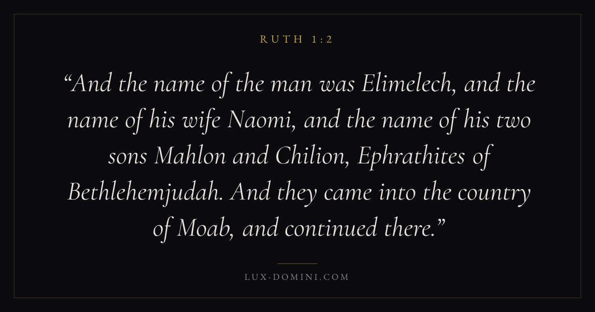And the name of the man was Elimelech, and the name of his wife Naomi, and the name of his two sons Mahlon and Chilion, Ephrathites of Bethlehemjudah. And they came into the country of Moab, and continued there.
