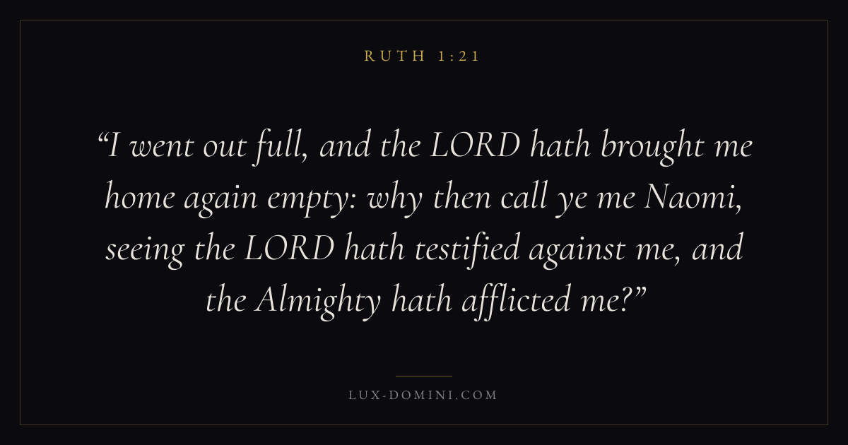 I went out full, and the LORD hath brought me home again empty: why then call ye me Naomi, seeing the LORD hath testified against me, and the Almighty hath afflicted me?