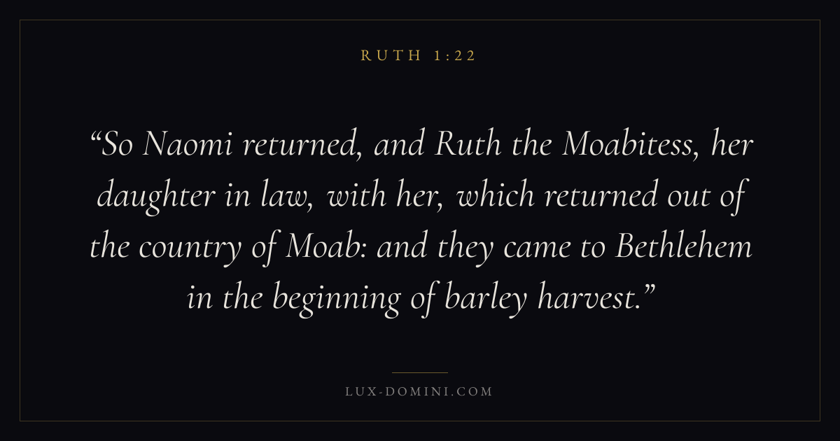 So Naomi returned, and Ruth the Moabitess, her daughter in law, with her, which returned out of the country of Moab: and they came to Bethlehem in the beginning of barley harvest.