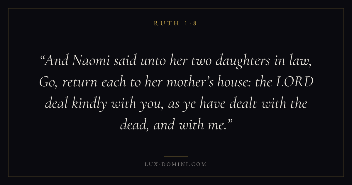 And Naomi said unto her two daughters in law, Go, return each to her mother’s house: the LORD deal kindly with you, as ye have dealt with the dead, and with me.