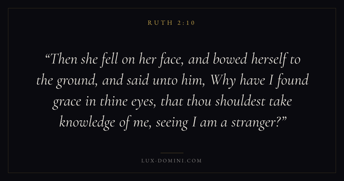 Then she fell on her face, and bowed herself to the ground, and said unto him, Why have I found grace in thine eyes, that thou shouldest take knowledge of me, seeing I am a stranger?