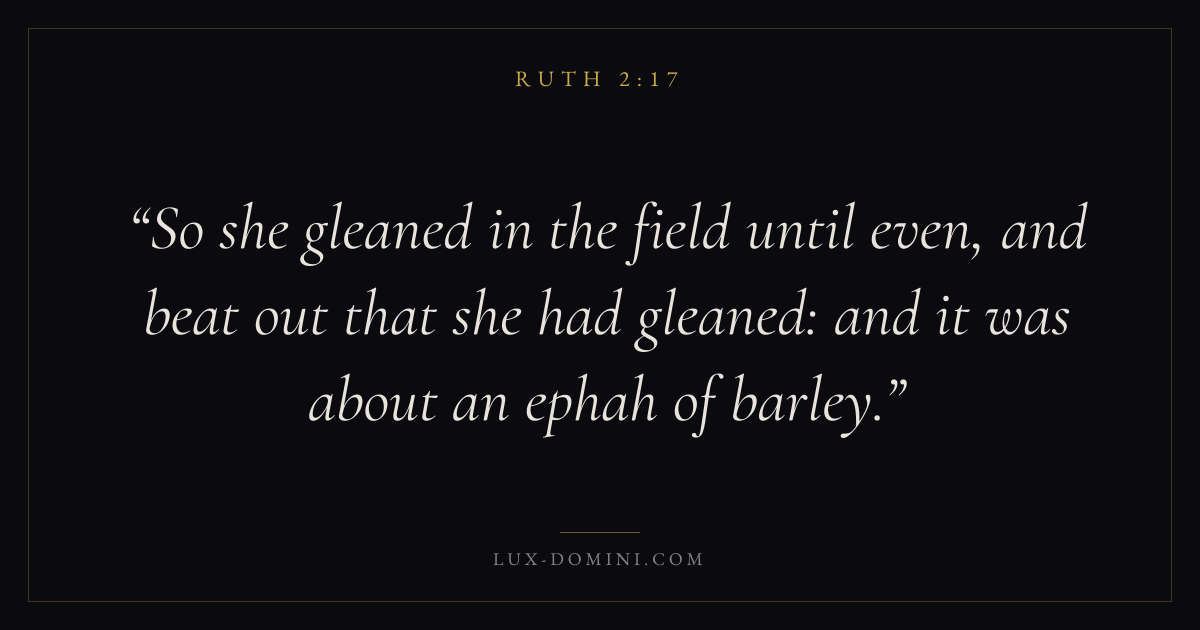 So she gleaned in the field until even, and beat out that she had gleaned: and it was about an ephah of barley.