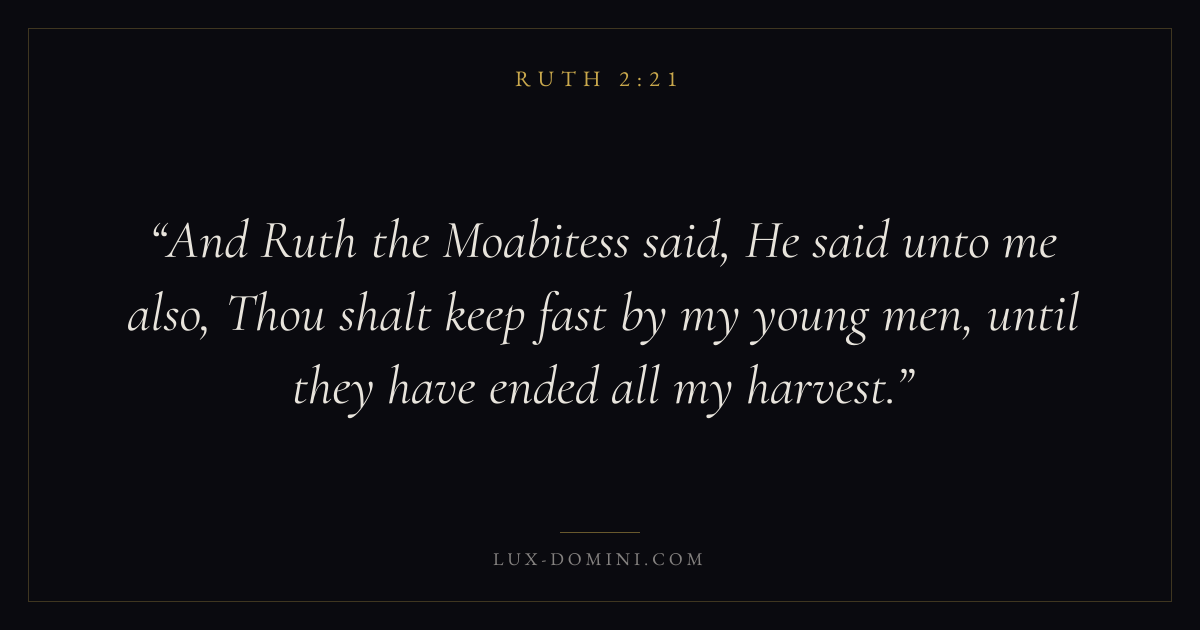 And Ruth the Moabitess said, He said unto me also, Thou shalt keep fast by my young men, until they have ended all my harvest.