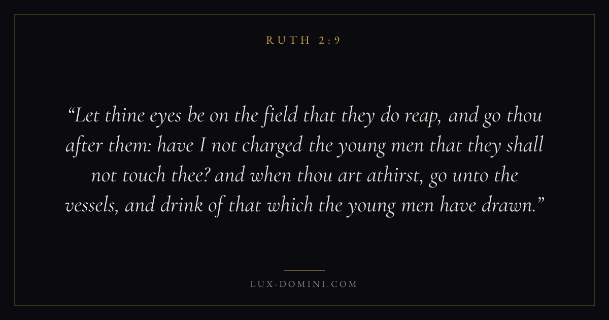 Let thine eyes be on the field that they do reap, and go thou after them: have I not charged the young men that they shall not touch thee? and when thou art athirst, go unto the vessels, and drink of that which the young men have drawn.