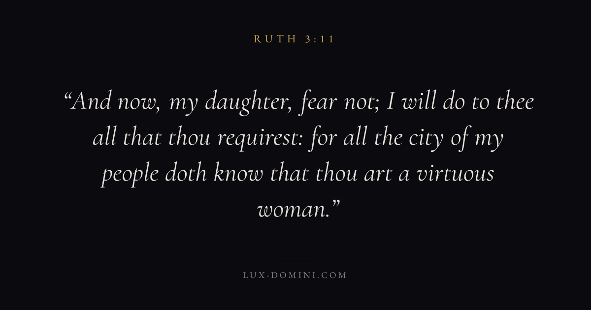 And now, my daughter, fear not; I will do to thee all that thou requirest: for all the city of my people doth know that thou art a virtuous woman.