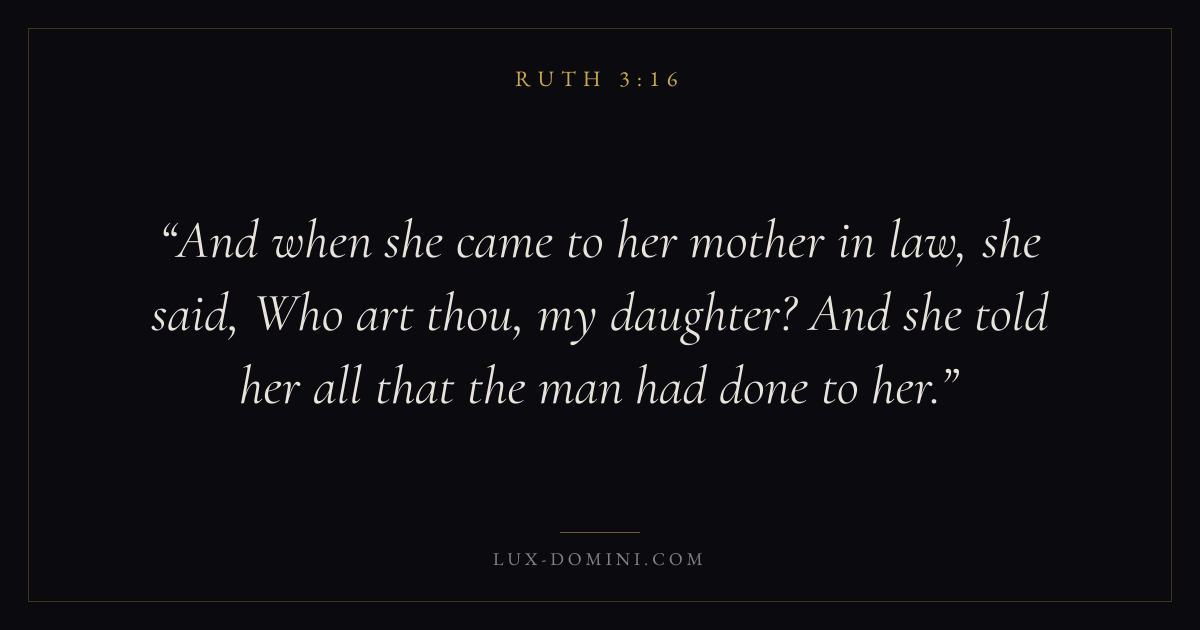 And when she came to her mother in law, she said, Who art thou, my daughter? And she told her all that the man had done to her.