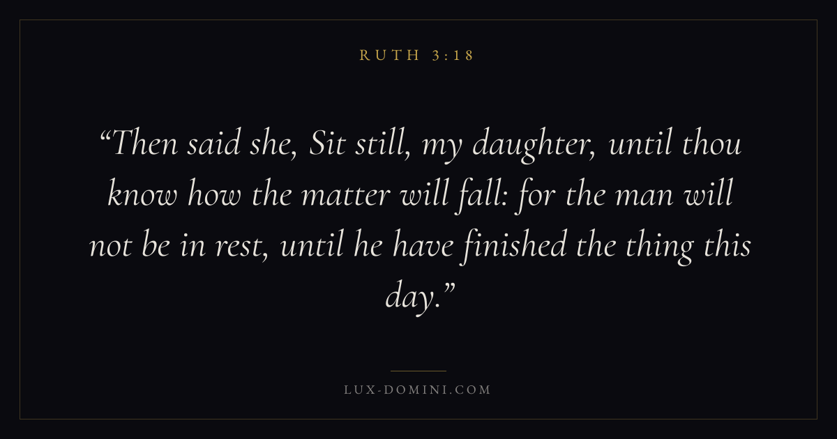 Then said she, Sit still, my daughter, until thou know how the matter will fall: for the man will not be in rest, until he have finished the thing this day.