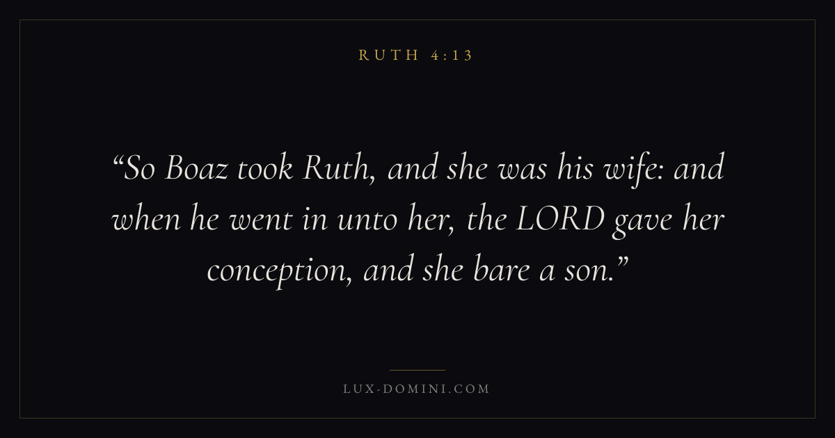 So Boaz took Ruth, and she was his wife: and when he went in unto her, the LORD gave her conception, and she bare a son.