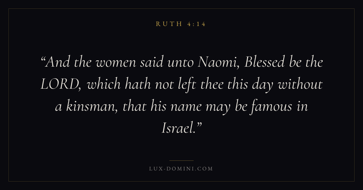 And the women said unto Naomi, Blessed be the LORD, which hath not left thee this day without a kinsman, that his name may be famous in Israel.