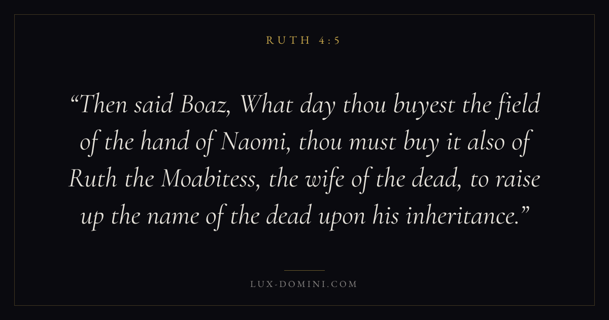 Then said Boaz, What day thou buyest the field of the hand of Naomi, thou must buy it also of Ruth the Moabitess, the wife of the dead, to raise up the name of the dead upon his inheritance.