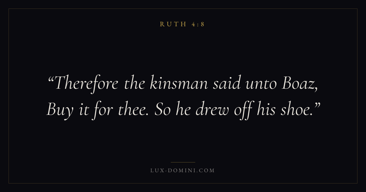 Therefore the kinsman said unto Boaz, Buy it for thee. So he drew off his shoe.
