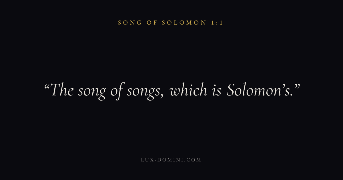 This is "the Song of songs," excellent above any others, for it is wholly taken up with describing the excellences of Christ, and the love between him and his redeemed people.