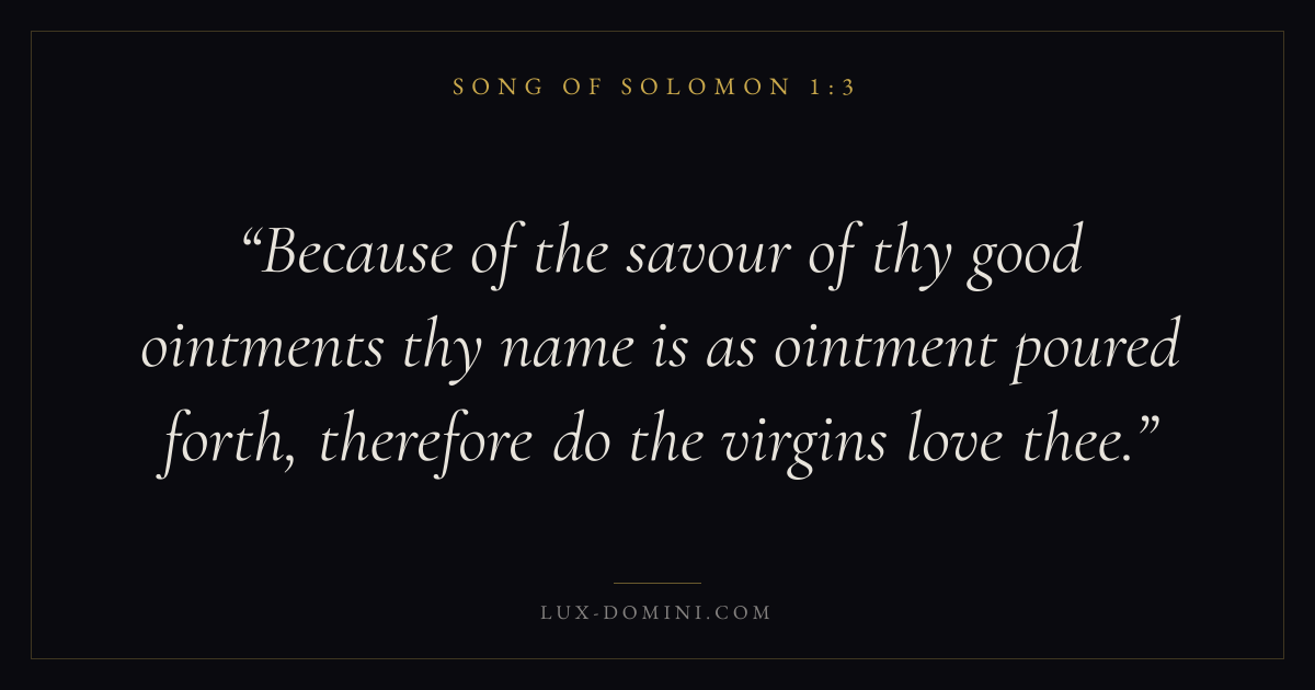 Because of the savour of thy good ointments thy name is as ointment poured forth, therefore do the virgins love thee.